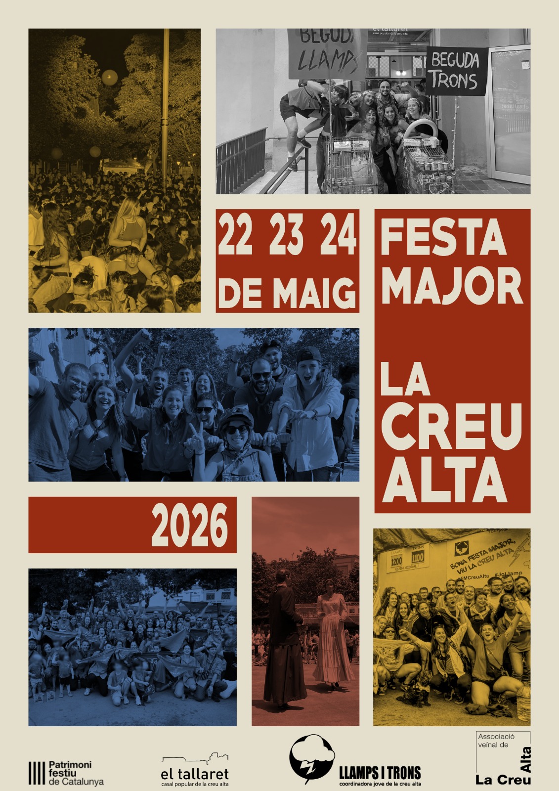 Aquest any 2026 la Festa Major de la Creu Alta, organitzada per la Coordinadora Jove de la Creu Alta "Llamps i Trons" i l'Associació Veïnal del barri, serà del 22 al 24 de Maig.